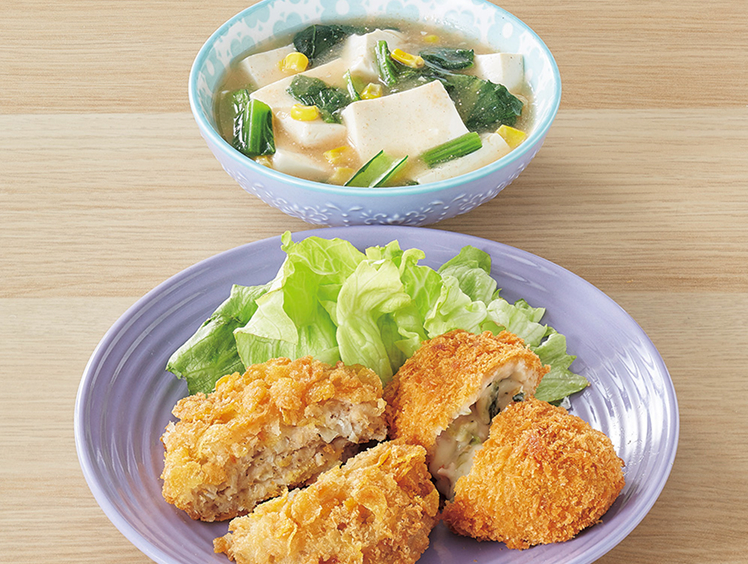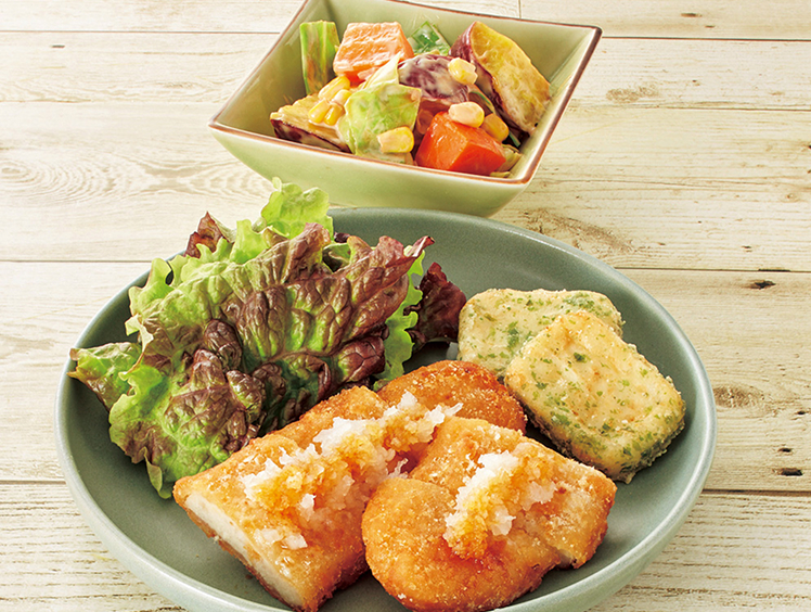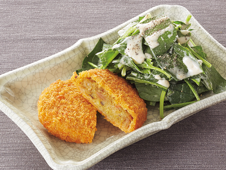 カレーコロッケ&サラダほうれん草のチーズ風味