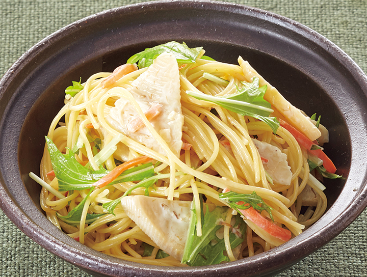 筍と水菜の和風スパゲティサラダ